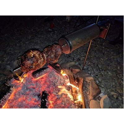 With more and more national parks introducing no in-ground open fire policies, the fire tray lets you build a contained fire so you can still enjoy a mouth-watering spit roasts. If there is a breeze blowing you can use the heat accelerator to keep your meal cooking and minimise any embers flying out. To use, have your fire tray on the bottom, skewer with your meat in the middle and heat accelerator‚ up the top. Loosely wrap foil around all three, in turn, creating an enclosed cook chamber holding in the heat and acceleration your cook.