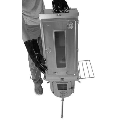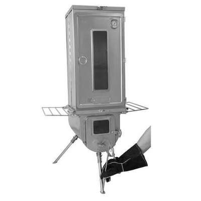 The Winnerwell Fastfold Smoker Large is compatible with Woodlander L-sized Camping Stove or the Nomad Series L-sized Stoves, however, it can be used as it is by standing it an above gas burner or even using it as a free-standing smoker. Due to its flatpack design, it is perfect for touring, hunting, fishing and camping or can also be used in the backyard or on the patio. Like all types of smokers, it can cook all different types of food including vegetables, beef, pork, chicken, ribs.