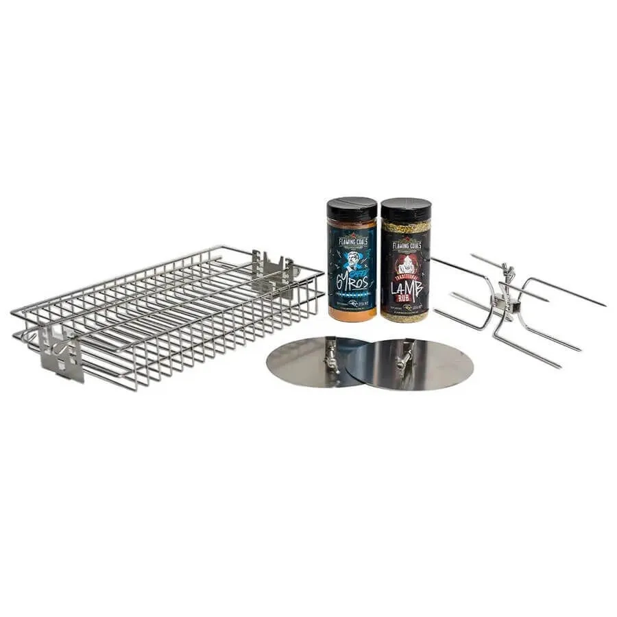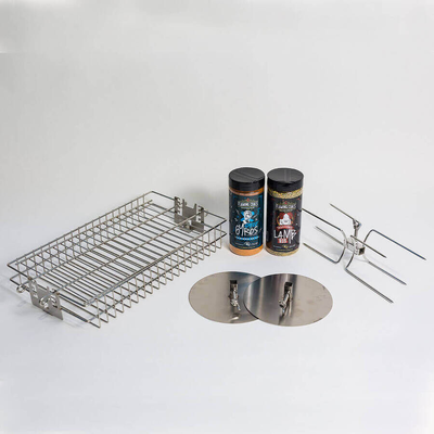 Expand the possibilities of your Jumbuck Mini Spit with this pack of must-have rotisserie accessories.