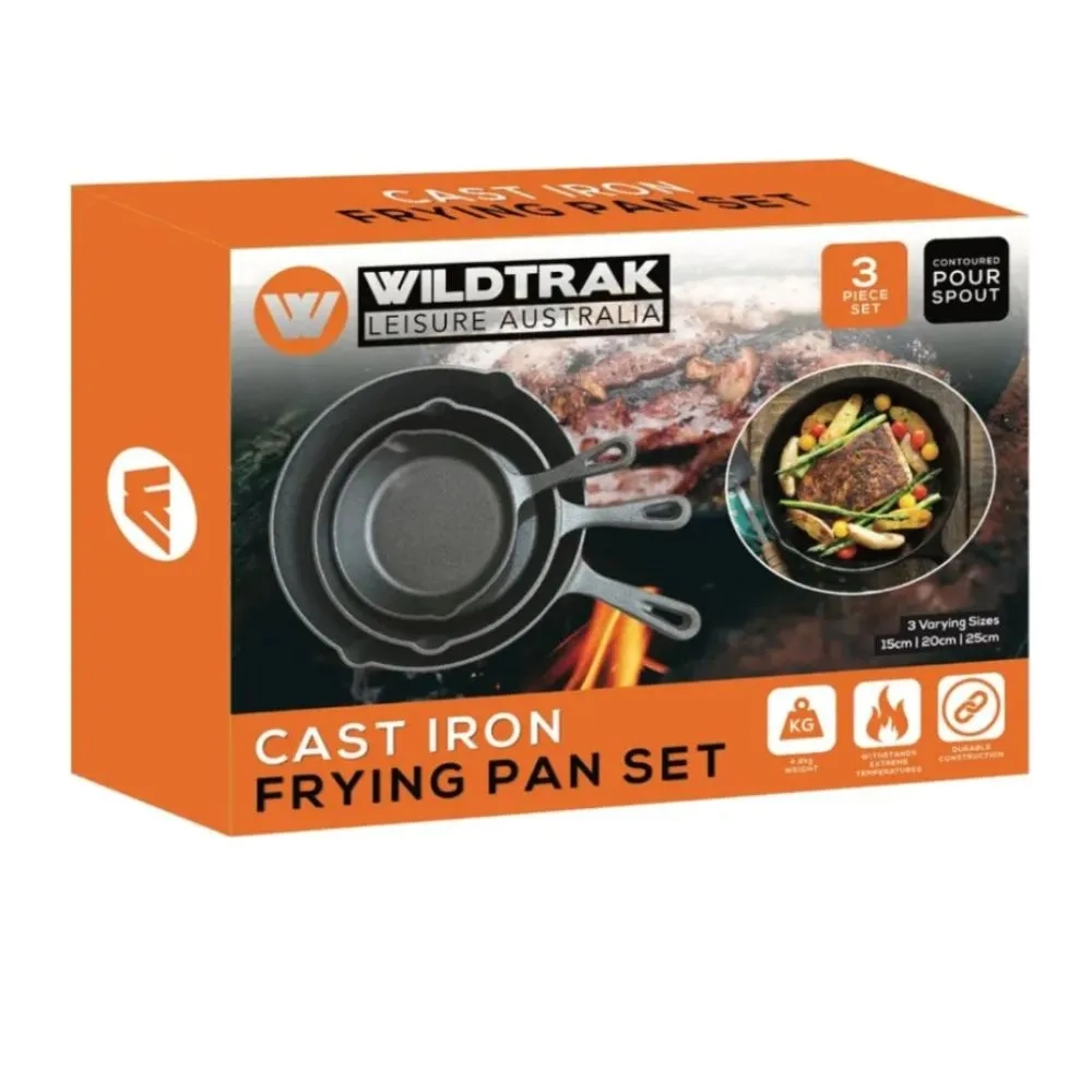 The Wildtrack 3-Piece Pre-Seasoned Cast Iron Skillet Set offers versatility and durability for all your outdoor cooking needs:
