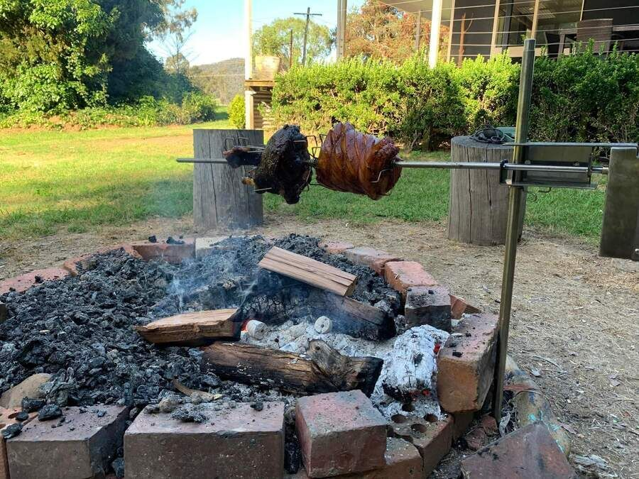 The Auspit Compact Spit Roast Kit - Silver is battery operated and can cook up to 8kg of meat. It is unique and easy to use.