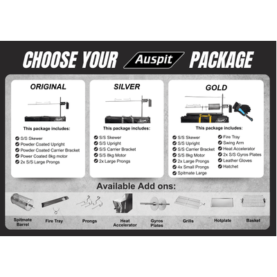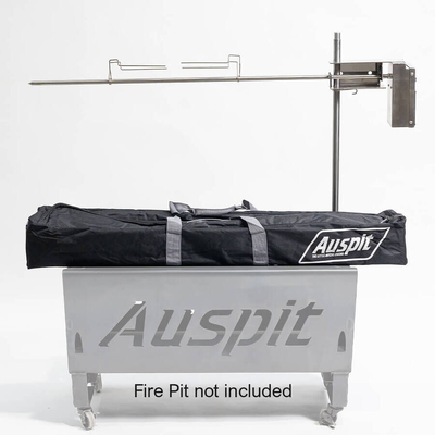 Auspit Compact Portable Camping Spit Rotisserie Package - Silver ( BUNDLE )