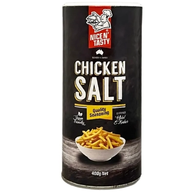 Nice N’ Tasty Chicken Salt is the ultimate all-round seasoning that elevates everyday meals. Perfect for potato fries, baked chicken, rice dishes, or simply as a flavour-packed substitute for regular salt. This 400g shaker is vegan-friendly and certified Halal and Kosher, making it suitable for all diets. Conveniently packaged in a shaker bottle, it lets you control just the right amount of seasoning with ease. Whether you’re cooking at home or seasoning on the go, the possibilities are endless with this Aussie favourite.