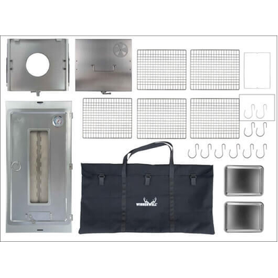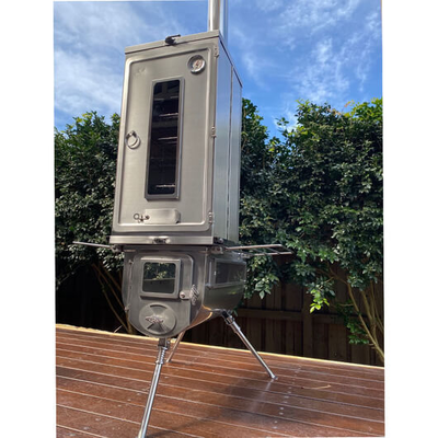 The Winnerwell Fastfold Smoker Large is compatible with Woodlander L-sized Camping Stove or the Nomad Series L-sized Stoves, however, it can be used as it is by standing it an above gas burner or even using it as a free-standing smoker. Due to its flatpack design, it is perfect for touring, hunting, fishing and camping or can also be used in the backyard or on the patio. Like all types of smokers, it can cook all different types of food including vegetables, beef, pork, chicken, ribs.
