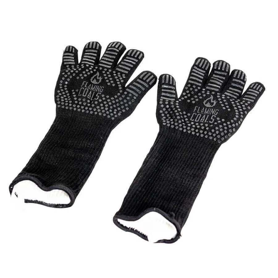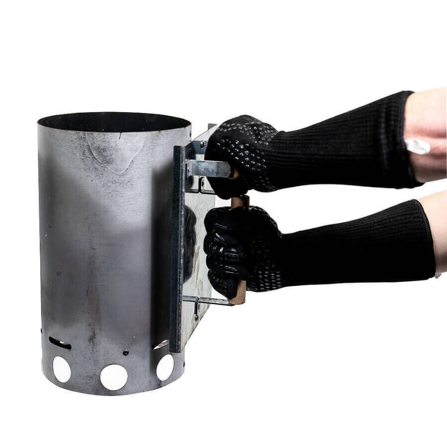 Standard length gloves that just cover up to your wrist are great for lifting smoker lids or moving a hot grill, however, if you are lighting a chimney starter full of hot charcoal then you need a little more protection than just your hands. The radiant heat from hot coals pouring out of the chimney starter will burn your forearms. This is also the same when you are arranging hot coals in your pit. Flaming coals realised that this was an issue with using shorter heatproof gloves and developed the Heat Resistant Gloves | Long Sleeve BBQ Gloves. These gloves are 35cm long so they cover the entire length of your forearm and can handle heat up to 500°c