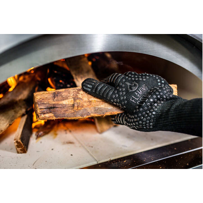 The gloves are flame resistant but not fireproof, so don't go sticking your arm in a burning fire. Even though they are not fireproof they can handle temperatures up to 500°c. This allows you to pick up hot logs and rearrange them around your fire, move your charcoal around your BBQ pit for better cooking and even pick up the hot cast iron pans and Dutch ovens from your fire when out camping.