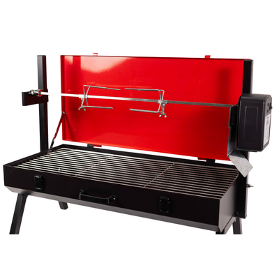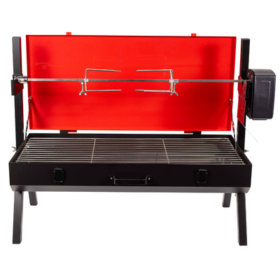 Mini Spit Roaster Charcoal BBQ - Red 3v Motor | Flaming Coals