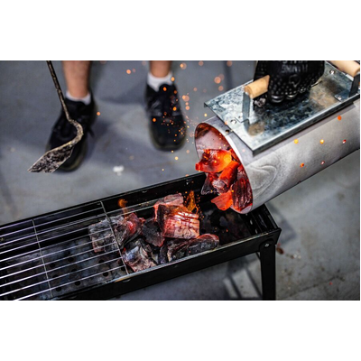 Also great for moving the hot coals in a spit roaster, charcoal BBQ or fireplace.